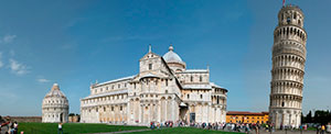 Пьяццадеи Мираколи в Пизе. Обнесённая высокой стеной пизанская «Площадь Чудес» находится в Старом городе.