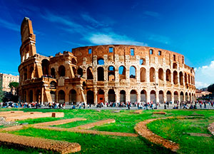 Колизей в Риме Крупнейший римский амфитеатр был построен в I веке. На нём проводились гладиаторские бои, морские сражения, звериные травли. В центре Колизея был установлен гигантский колосс (статуя) Нерона, лёгший в основу названия амфитеатра.